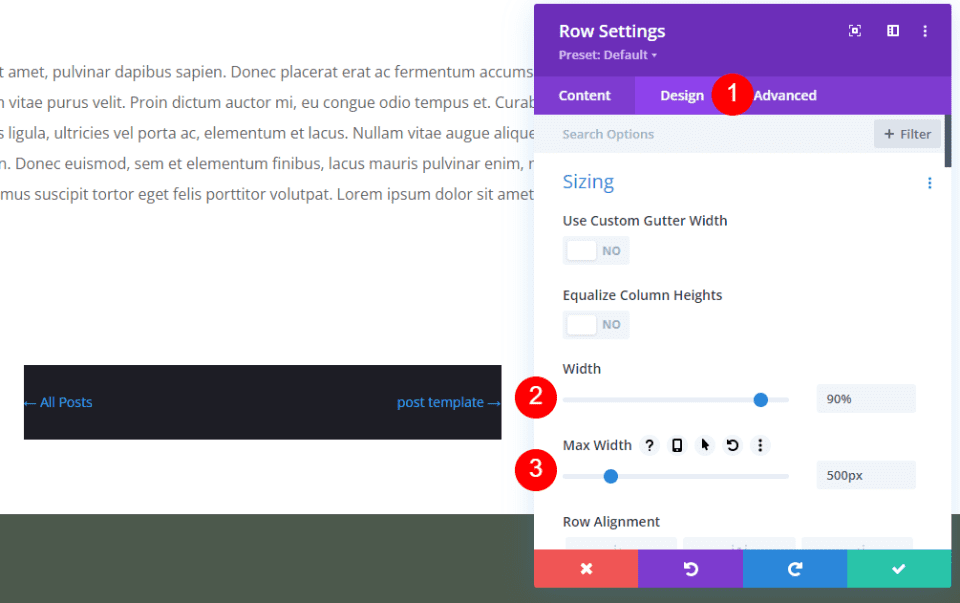 We will add the post navigation to its own row under the post content. This layout uses background colors within the rows, so we’ll add space with a divider. We’ll use this same row for all three designs.
